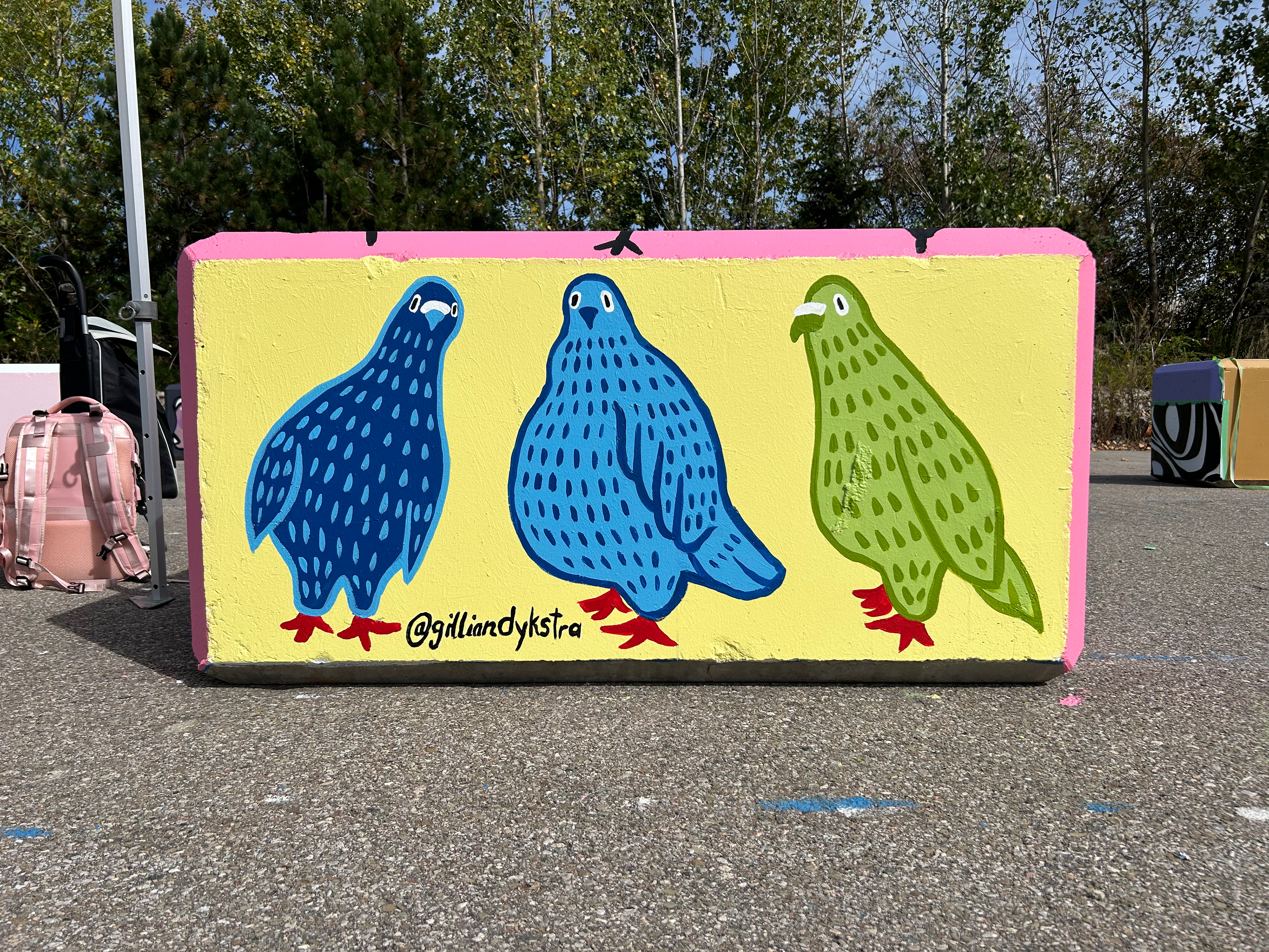 3 hand painted concrete barriers for StART StreetArtToronto (StART) completed in September 2024.